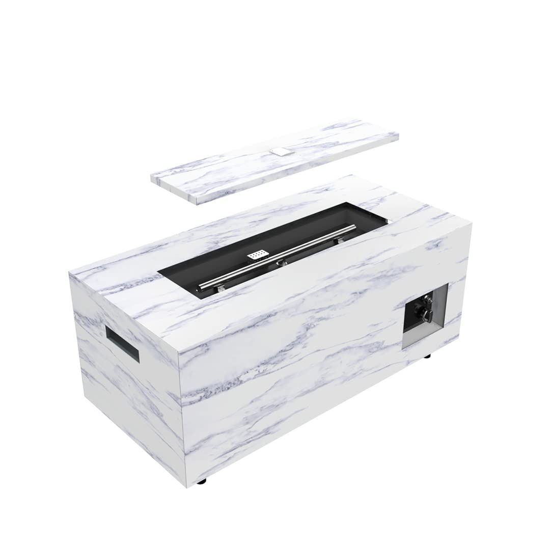 • Multi-Function - Put the Lid to get more table space. The size of the Rectangle tabletop is L 42" x W 20", which provides more space for drinks and foods. The gas firetable can be a patio dining table in your yard. Lava Rock makes the flames more interesting. You can also replace Lava Rock with Fire Glass to get colorful flame.